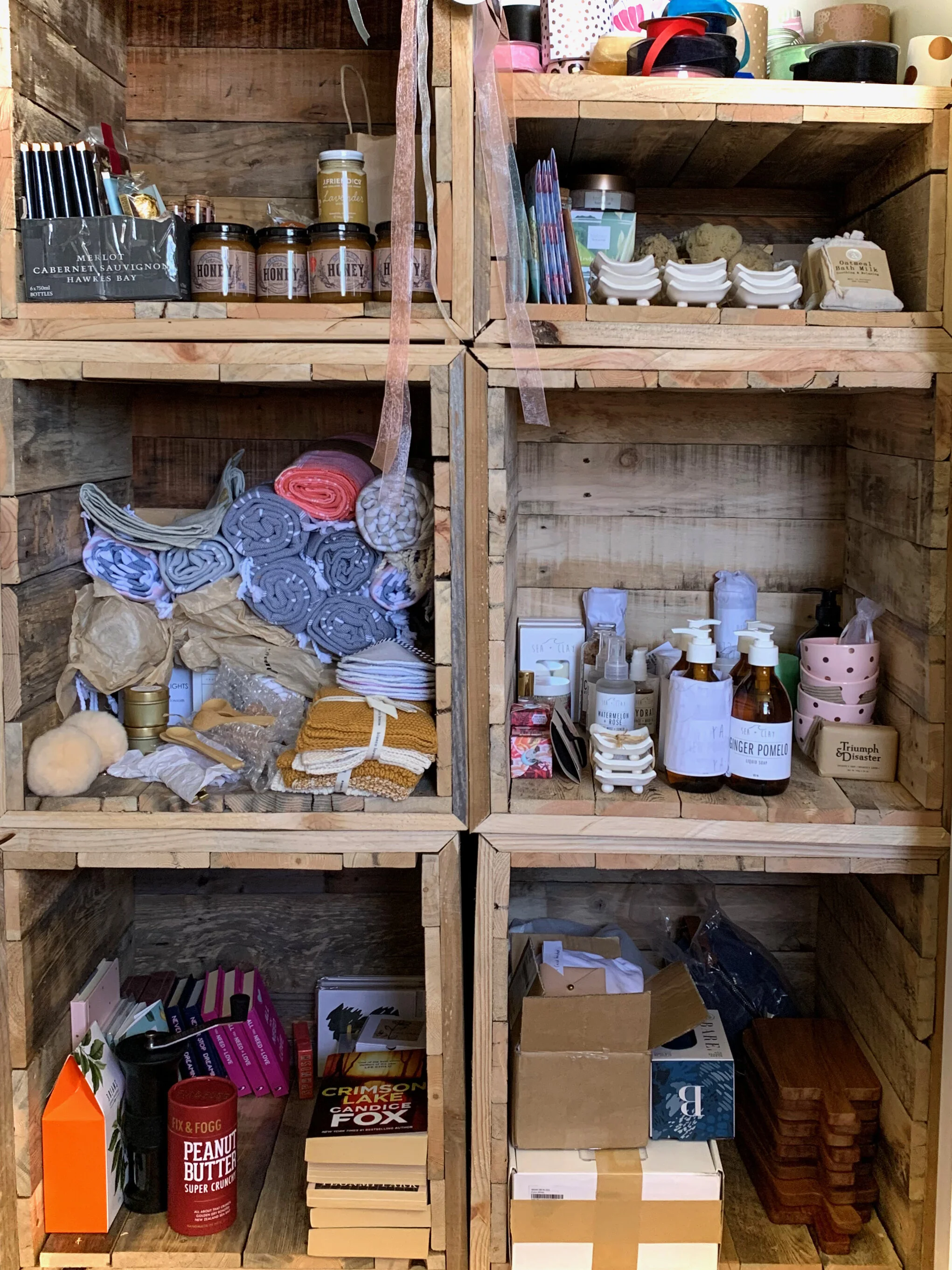 Gratitude gift boxes had moved to Waipu. Pretty quickly some kind of shelving was needed to store the products. Shelves can be costly to buy, especially if you want them to be made from natural eco-friendly materials. They also need to be strong and solid to safely support the weight of the stock.